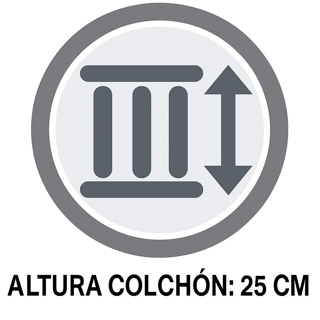 Tela: Tejido de punto 220 gramos Relleno Acolchado: Acolchado en espuma 60 mm de alta densidad Unidad Interna: Lámina de cassata 75RT de 4 cm, Lámina de espuma D23 de 14 cm, Lámina de cassata 75RT de 4 cm