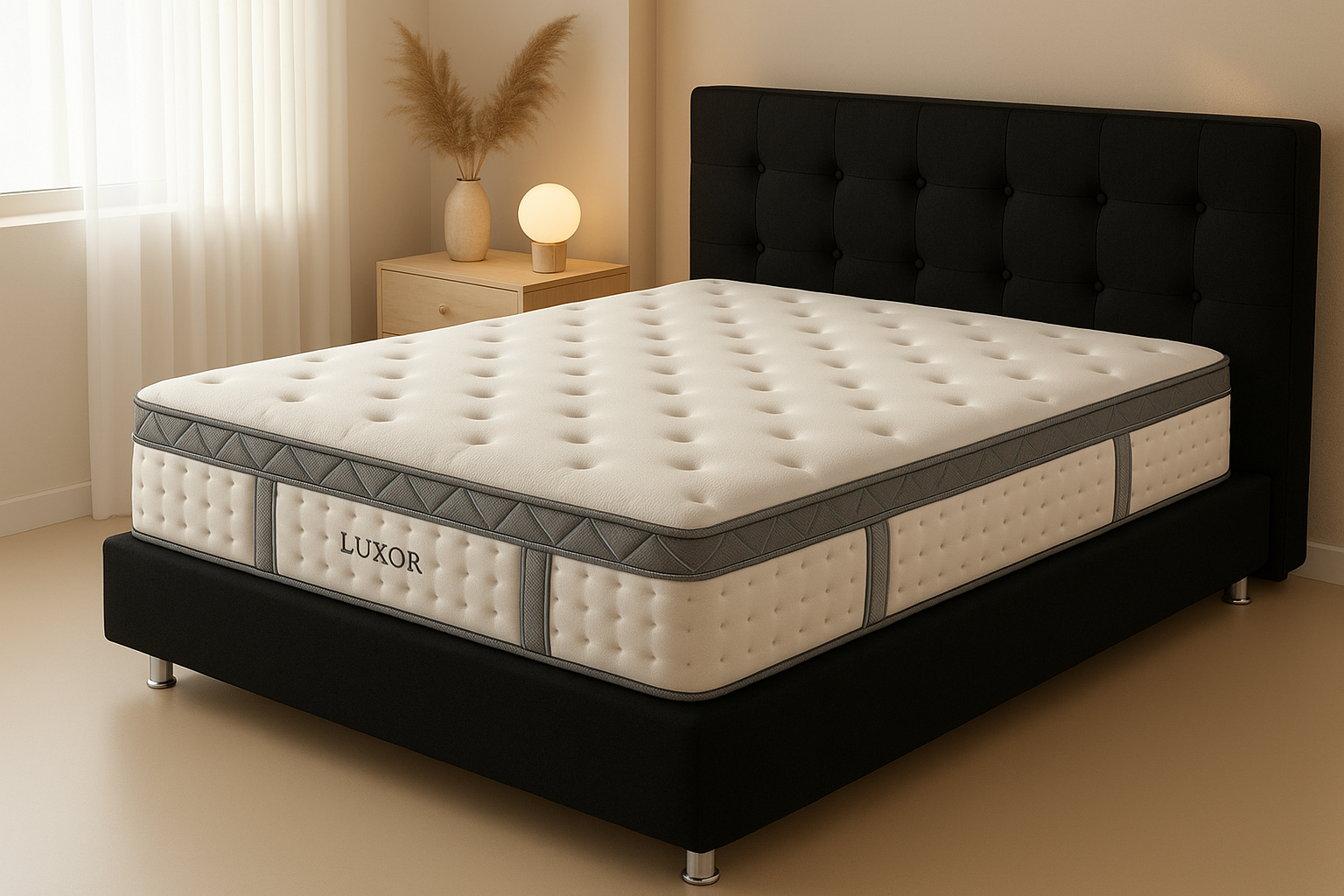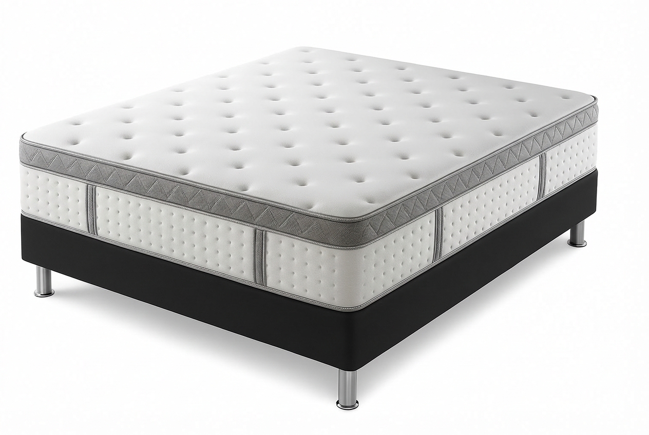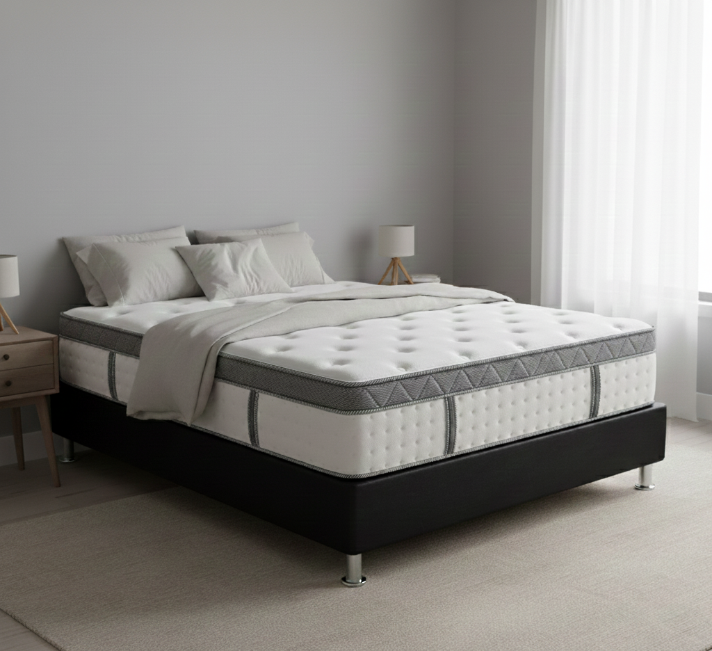 – Colchón súper ortopédico estilo Euro top por un lado con refuerzo lumbar y estructura interna en resortes Bonnell.