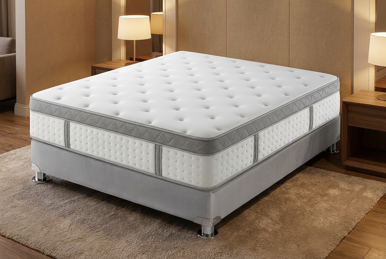 – Colchón súper ortopédico estilo Euro top por un lado con refuerzo lumbar y estructura interna en resortes Bonnell.